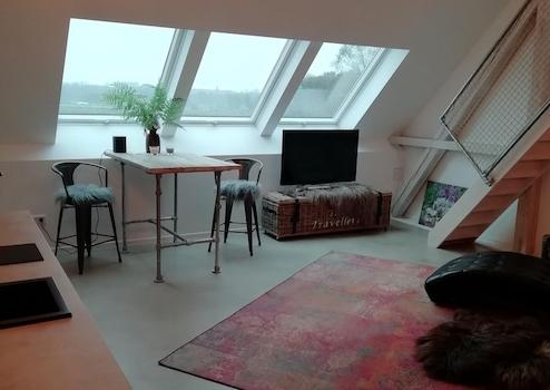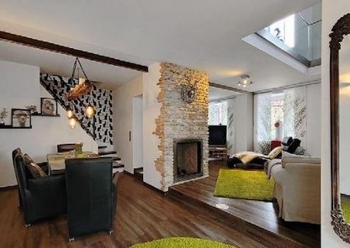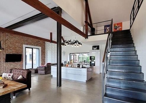 Dachbalken, freiliegendem Klinker und einer imposanten