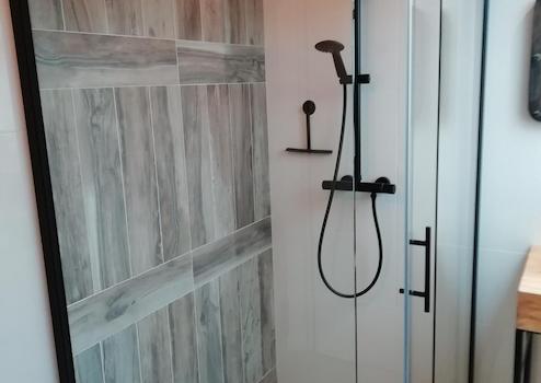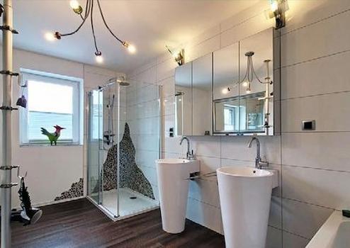 stilvoll eingerichtetes Duschbad am Ende der Diele komplettiert