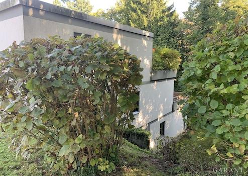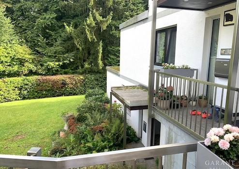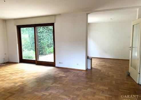 Wenn Sie Natur lieben und gerne renovieren, dann ist diese Terrassenhaus-Wohnung genau das RICHTIGE! Insgesamt wurden in Karlsruhe-Berwald drei Terrassenwohnungen übereinander gebaut. Mit 29 Stufen gelangen Sie zu Ihrem separaten Eingang. Von der geräumigen Diele geht es in das über 34 qm große Wohnzimmer das offen gestaltet ist zum vierten Raum - Esszimmer/Arbeitszimmer oder 2. Kinderzimmer - je nach Bedarf. Der hochwertige Parkettboden kann abgeschliffen werden. Auch vom Schlafzimmer gelangen Sie auf die vollkommen uneinsehbare, ca. 26 qm große Terrasse. Zwei Bäder im Charme des Baujahrs sind ein zusätzliches Plus ebenso wie die Teilunterkellerung. Hier ist eine gemütliche Bar eingebaut worden und es hat Platz für Vieles. Unter der Garage befindet sich noch ein Abstellraum, ideal für Fahrräder und ähnliche Dinge. Die Wohngemeinschaft, sieben Parteien, hat für die Pflege des parkähnlichen Grundstücks jemand angestellt. Gestalten Sie hier Ihr neues Zuhause!