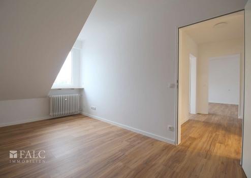 Diese im Jahr 2024 kernsanierte Wohnung im Dachgeschoss bietet auf einer Wohnfläche von ca. 106 m² optimalen Raum für Paare oder die kleine Familie. Insgesamt stehen Ihnen ein weitläufiges und lichtdurchflutetes Wohnzimmer zur Verfügung, das direkt an die Küche mit Vorratsraum angrenzt. Beide Zimmer haben einen Ausgang zum Balkon.