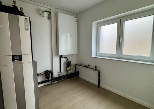 Die Beheizung des Hauses erfolgt ausschließlich über Strom: Eine Luftwärmepumpe in Kombination mit einer 10 kWp-Photovoltaikanlage und einem 10 kWh-Stromspeicher deckt den Heiz- und Strombedarf energieeffizient und umweltfreundlich ab.