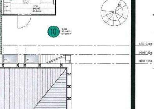 Im ausgebauten Dachgeschoss befindet sich der große Schlafbereich mit angrenzendem Wannenbad. Ein zusätzliches Duschbad befindet sich auf der unteren Etage der Wohneinheit.