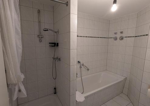 Das Bad bietet neben Wanne und separater Dusche auch Platz für eine Waschmaschine. Ein Aufzug erleichtert den Zugang zum Tiefgaragenstellplatz und dem trockenen Kellerraum für zusätzlichen Stauraum. Stellplatz und Wohnung sind nur wenige Meter vom Aufzug entfernt. Eine Gegensprechanlage ist vorhanden.