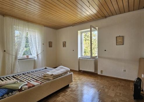 Im Erdgeschoss betritt man das Haus über einen nachträglich angebauten Windfang, das eine Wohnküche, ein Bad, ein Wohnzimmer und eine "gute Stube" beherbergt. Über eine Holztreppe gelangt man ins Dachgeschoss. Hier wurden 3 Schlafzimmer, alle samt kleine Räumchen, eingerichtet. Das Haus ist unterkellert und beherbergt die üblichen Räumlichkeiten wie Werkstatt, Lagerraum und Heizungsraum. Eine grosse Garage mit 2 weiteren, zusätzlichen Stellplätzen, sowie ein Freisitz, sowie ein schöner Garten erwartet den neuen Besitzer.