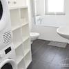 Wannenbad/WC mit Waschmaschine und Trockner.