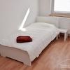 4 Schlafzimmer, jeweils mit Bett 90x200 cm, Schreibtisch mit Stuhl, Kleiderschrank.
