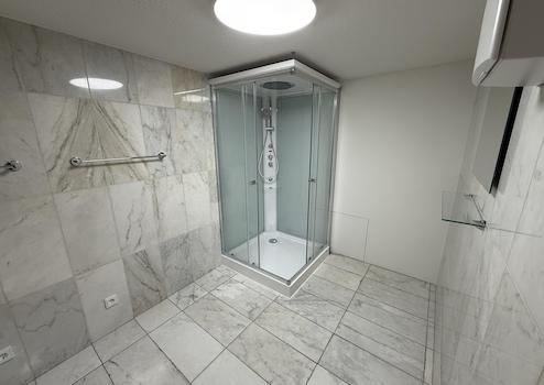 Jede Wohnung (EG, 3.OG und Bungalow) ist mit einer Einbauküche ausgestattet, inkl. Tisch und Stühle. Jede Wohnung verfügt über ein separates Bad und zusätzliches WC.