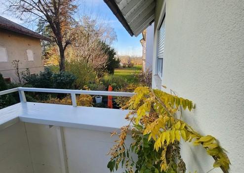 Die Wohnung verfügt über einen Südwest Balkon, teilweise überdacht. Die Balkonbrüstung ist aus Vollholz und der Boden gefliest. Ein geräumiger, separater Abstellraum ist vom Flur aus zugänglich .