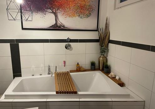 • Gepflegtes Badezimmer und gut ausgestattete Designer-Küche