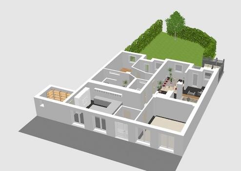 Verschiedene Möbel, Küche und Interior inklusive.