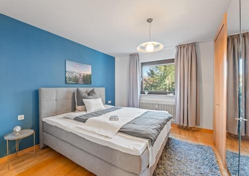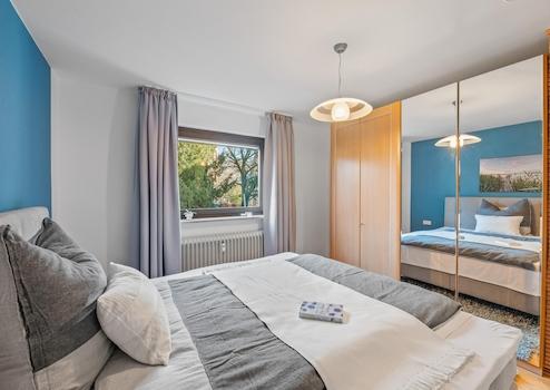 - Schlafzimmer mit ausreichend Platz für ein großes Bett und Kleiderschrank,