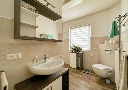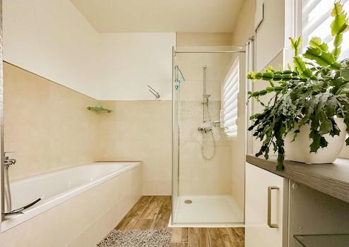 * Badezimmer mit Wanne und ebenerdiger Dusche