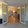 Große, neue, bodentiefe Holzfenster und -schiebetüren.