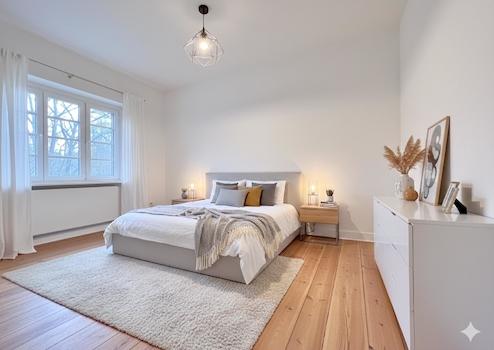 Diese charmante Wohnung aus dem Jahr 1929 überzeugt durch eine clevere Raumaufteilung, bei der Sie alle Zimmer direkt vom Flur aus erreichen – ideal für eine flexible Nutzung. Die helle und freundliche Atmosphäre mit den hohen Decken sorgt für ein angenehmes Wohngefühl, während die ruhige Lage Entspannung und Sicherheit garantiert. Besonderen Charme strahlen der hochwertige Dielenboden und die verzierten Türrahmen aus.