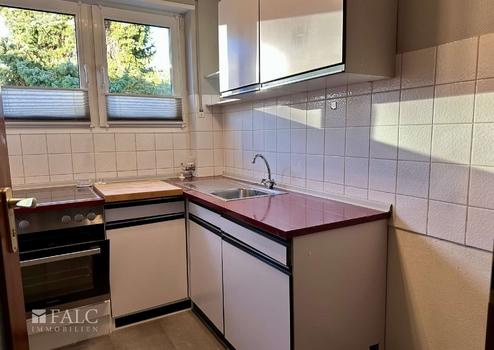 Die Küche ist bereits mit einer funktionalen Einbauküche ausgestattet, die über einen Backofen, einen Herd mit Cerankochfeld und eine Spüle verfügt – ideale Voraussetzungen zum sofortigen Start in den Kochalltag.