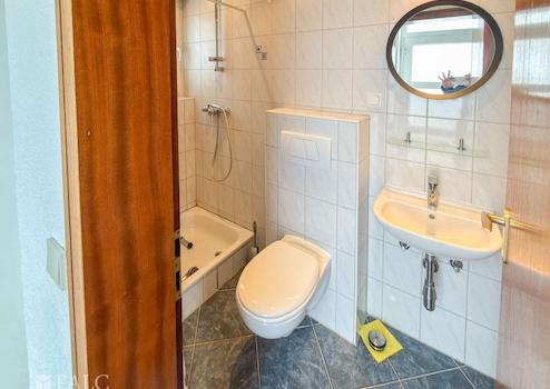 In Küche und Bad wurden pflegeleichte Fliesenböden verlegt – praktisch und zugleich stilvoll. Das Tageslichtbad verfügt über Waschbecken, Dusche und WC und ist deckenhoch mit hellen Fliesen versehen, so dass Sie Farbakzente ganz nach Ihren Lieblingsfarben setzen können.