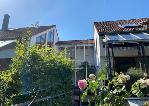 Sie haben die Möglichkeit, in einer sehr naturnahen Umgebung zu leben und gemeinsam mit den Nachbarn die große Terrasse zu nutzen, die beide Häuser miteinander verbindet. Auf Ihrer eigenen Terrasse und in dem kleinen Garten genießen Sie hingegen Ihre Privatsphäre.