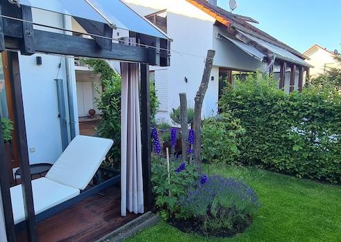- Überdachte Terrasse mit kleinem Garten