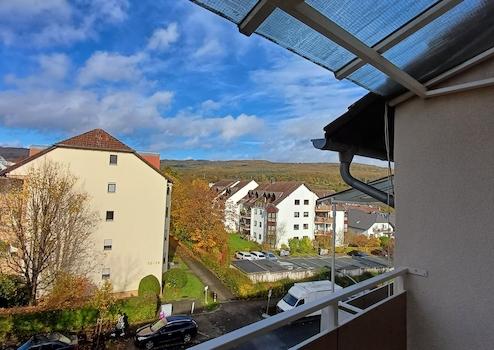 Von dem Flur haben Sie Zugang in alle Räume der Wohnung. Von dem Wohnzimmer gelangen Sie auf den überdachten Balkon mit Ausblick in den Taunus, auf dem Sie den Tag entspannt ausklingen lassen können.
