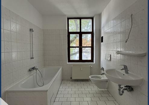 Das Badezimmer befindet sich ebenfalls in einem gepflegten, jedoch nicht sanierten Zustand. Es ist funktional ausgestattet und erfüllt alle grundlegenden Anforderungen. Wer es mag, eine Wohnung nach und nach individuell zu gestalten, findet hier eine gute Basis mit Entwicklungspotenzial.