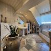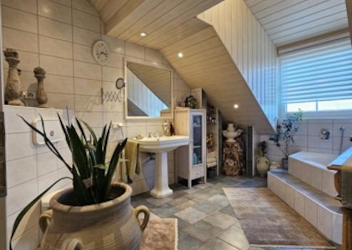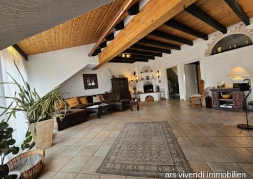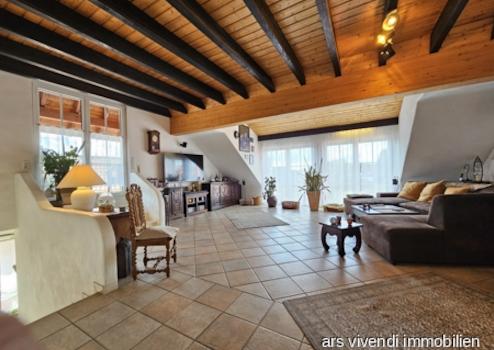 Die Hauptwohnung liegt im Obergeschoss und Dachgeschoss des Hauses und geht über 2 Etagen (ca. 139 m²) Sie hat eine grosse offene, helle und gemütliche Raumgestaltung machen das Wohlfühlen hier wirklich einfach! Sie betreten Sie den riesigen Wohnbereich mit offener Küche, in der eine hochwertige Küche mit Kochinsel eingebaut wurde und haben einen tollen Blick in den Garten mit Bar und Wintergarten. Auf dieser Ebene ist ein Duschbad mit Wc vorhanden, sowie zwei Schlaf-/Arbeits-/Kinderzimmer. Über eine Treppe gelangen Sie in die zweite Etage mit riesigem Zimmer mit Kamin, in dem man sich einfach nur wohlfühlen kann, sowie in das grosszügige Bad und ins Elternschlafzimmer. Hier finden Sie noch einen schönen Balkon, auf dem man herrlich die Abendsonne geniessen kann.