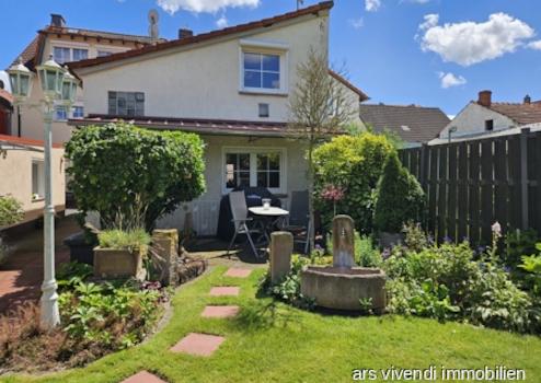 Im Hof steht ein kleines Häuschen mit Küche, einem Wohnzimmer mit Esszimmer, Wc und Wannenbad. Im Obergeschoss finden Sie ein Schlafzimmer und ein Büro. Hier könnte ein weiteres kleines Räumchen ausgebaut und der Platz erweitert werden.