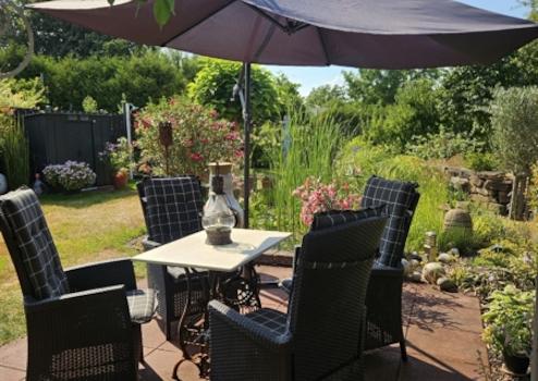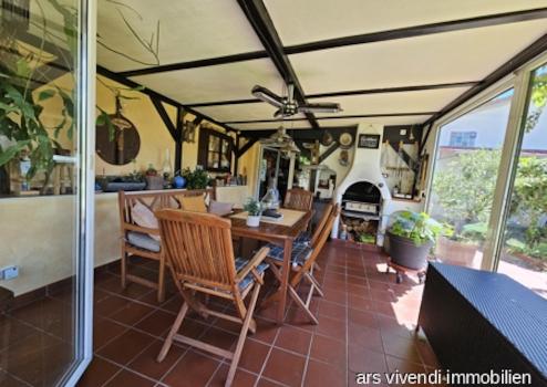 Weiter geht es mit der Garage mit elektrischem Rolltor, ebenfalls perfekt gepflegt. Das dahinterliegende massiv gebaute Gartenhaus mit Bar und Wintergarten machen Lust auf gemütliche Sommerabende mit Freuden und Familie. Hier gibt es ebenfalls ein Gäste-wc. Der schöne, ruhige Garten ist sehr gepflegt und traumhaft angelegt. Ein wunderbarer Platz am Teich wurde geschaffen, um zu entspannen.