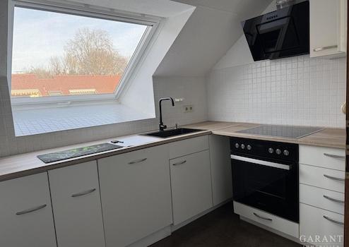 Die Küche liegt in Nordausrichtung und ist dank eines extrem großen Dachfensters sehr gut belichtet. Die moderne weiße Einbauküche ist im Kaufpreis enthalten. Das Schlafzimmer ist nach Osten ausgerichtet.