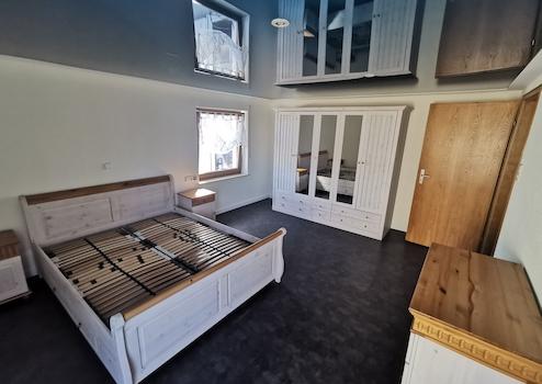 Wohnzimmer, Schlafzimmer und Küche/Esszimmer komplett möbliert, Küche neu.