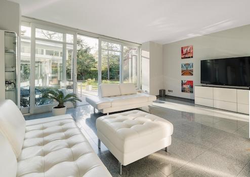 Klarheit, natürliche Materialien und ein durchdachtes Lichtkonzept bestimmen das Erscheinungsbild des Hauses. Die Fußbodenheizung im Erdgeschoss und in den Bädern sorgt für behagliche Wärme. Beheizt wird das Haus über eine Gasheizung (Bj. 1997); das Brauchwasser wird zusätzlich durch eine Solaranlage umweltfreundlich erwärmt. Die Böden sind mit Natursteinfliesen, Fliesen und Teppich belegt.