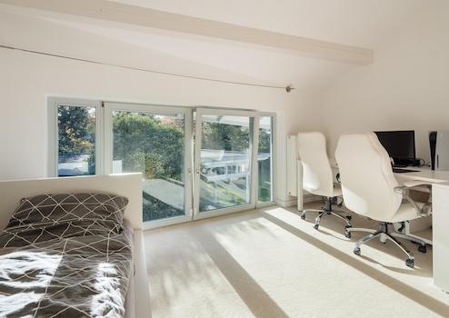 Im Obergeschoss befinden sich vier helle Zimmer mit vielseitigen Nutzungsmöglichkeiten – ob als Kinderzimmer, Gästezimmer oder Homeoffice. Ein luxuriöses Vollbad, ein weiteres Duschbad sowie ein großzügiges Ankleidezimmer unterstreichen den hohen Wohnkomfort.