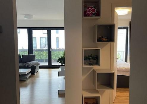 Der Einzugstermin ist flexibel. Die Wohnung ist 65 m² groß und komplett möbliert mit Bad, Küche (alle Geräte inklusive Geschirrspüler), Fernseher und Schlafzimmer.