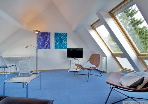 Die Wohnung ist mit einem geölten Parkett ausgestattet, während auf der Galerie Tretford-Teppich für gemütlichen Komfort sorgt. Alle Fenster können mit Jalousien oder Rollläden verdunkelt werden. Der Internetzugang wird über einen Gast-Zugang (100 MBit) zur Verfügung gestellt.