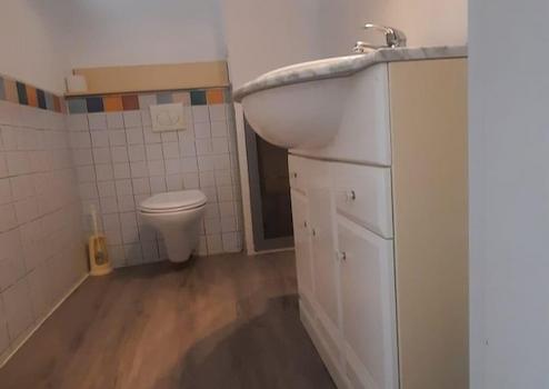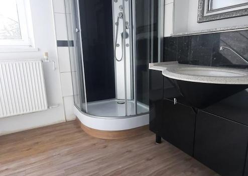 Duschbad, Einbauküche, Laminat, Fliesen