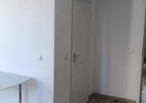 Das separate Schlafzimmer bietet einen ruhigen Rückzugsort und ausreichend Platz für ein Doppelbett sowie weitere Möbelstücke. Das Badezimmer ist funktional gestaltet und mit allen notwendigen Sanitäreinrichtungen ausgestattet.