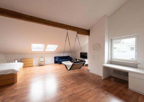 Im 1. Obergeschoss befinden sich drei große Schlafzimmer mit Parkett- und Laminatboden und das 2007 vollständig neu renovierte Bad. Von allen Schlafräumen haben Sie direkten Zugang zum 2022 erneuerten, umlaufenden Balkon. Im Dachgeschoss betreten Sie das Studio, welches aus zwei sehr großen Räumen besteht. Aus beiden Zimmern haben Sie nochmals direkten Zugang zum erneuerten Balkon. Ein hell gefliestes, renoviertes Duschbad ist ebenfalls vorhanden. Im Kellerbereich gibt es einen ca. 28qm großen Hobbyraum mit Laminatboden, einen großen Wirtschaftsraum mit Waschküche, einen Vorratsraum, den Technikraum (Brenner und Kessel sind 2007 erneuert worden), sowie den Raum mit dem Öltank. Ein Tiefgaragenstellplatz sowie ein großer WEG-Garten zur Mitbenutzung gehören zum Anwesen dazu.