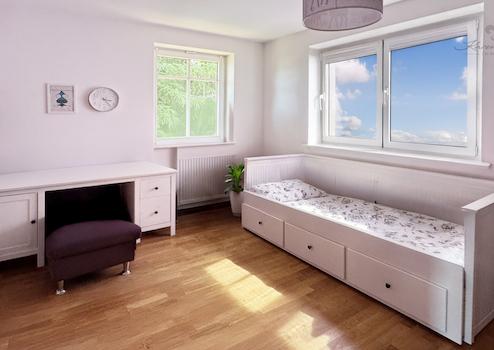 Das Erdgeschoss empfängt Sie mit einem offenen und lichtdurchfluteten Wohn- und Essbereich, der harmonisch in eine schöne, moderne Einbauküche übergeht. Praktisch für Familie und Gäste steht Ihnen hier auch ein Gäste-WC zur Verfügung. Ideal für Familie und Besucher bietet das Haus insgesamt vier Zimmer, darunter drei komfortable Schlafzimmer. Ein elegantes Badezimmer im Obergeschoss sorgt zudem für entspannende Wohlfühlmomente.