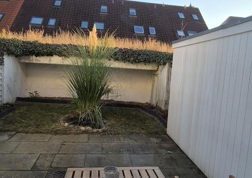 Terrasse mit Markise (13qm) mit Garten (17 qm) zur eigenen Gestaltung, geräumiger Schuppen ( 1,20m × 3,50m),