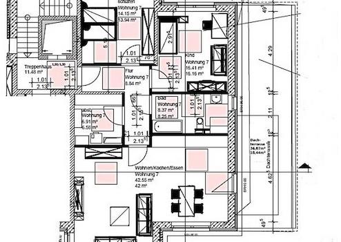 Die Wohnfläche beträgt 114m² (Innenbereich 96m² zzgl. Dachterrasse gem. WoFlV).