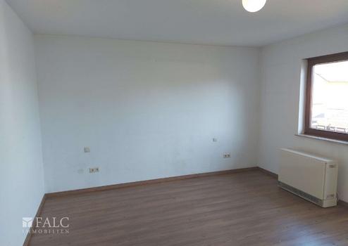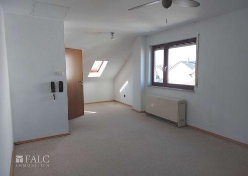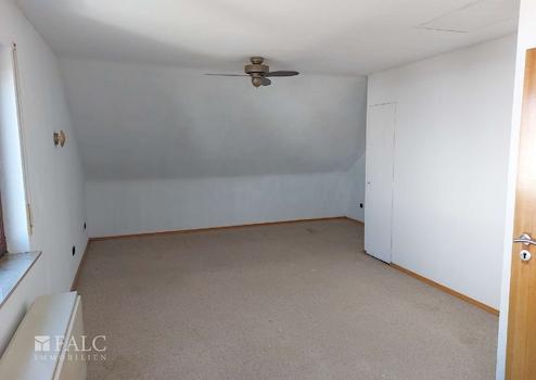 Das Dachgeschoss beherbergt ein weiteres Zimmer, das als Studio oder Spielzimmer genutzt werden kann. Die großen Fenster sorgen auch hier für eine helle und freundliche Atmosphäre.