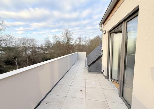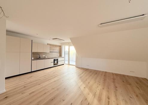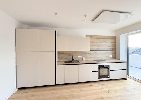 Exklusive 2-Zimmer-Dachgeschosswohnung im KfW-40-QNG-Neubau (2026) mit Balkon, Echtholzparkett, Luxus-EinbaukĂĽche von Kuhlmann und komfortabler Pauschalmiete inkl. Strom & Heizung.