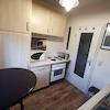 Die Wohnung ist voll möbliert, wie Sie auf den Bildern sehen können. Schrank, Bett und Schreibtisch befinden sich im Wohn-/Schlafbereich. Ebenso Fernseher und Arbeitsplatz. Die Küche ist komplett mit Herd und Kühlschrank sowie Bartisch und Barhocker ausgestattet. Kochtöpfe, Geschirr, Gläser und Besteck für den täglichen Bedarf sind in der Küche vorhanden.
