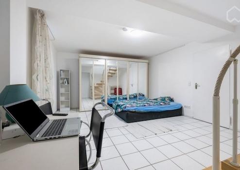 Souterrain (2 Fenster, taghell): Kleiderschrank, Bett, (als Schlafzimmer eingerichet)