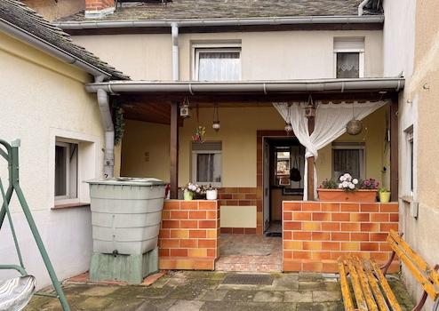 Beim Betreten des Grundstücks empfängt Sie ein kleiner, gepflegter Vorgarten mit Grünfläche für Beete und einer gemütlichen Terrasse. Ein praktischer Geräteschuppen grenzt direkt an und eignet sich ideal zur Unterbringung von Werkzeug, Gartengeräten oder als kleine Werkstatt. Zusätzlich stehen eine Außenküche sowie eine überdachte Veranda zur Verfügung – perfekt für gesellige Abende im Freien.
