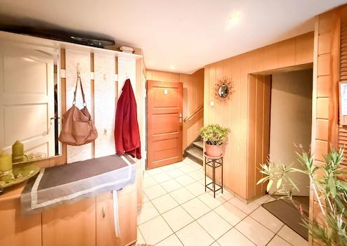 Das erste Obergeschoss überzeugt durch einen großen, hellen Flur, der zu allen Räumen führt. Darunter ein geräumiges Schlafzimmer mit Deckenspots, ein zweites Badezimmer mit Fenster, Dusche, WC und Waschbecken, eine Küche mit Einbauküche, die vollständig mitverkauft wird, ein großzügiges Wohnzimmer sowie ein weiteres Zimmer, das sich ideal als Arbeits-, Kinder- oder Schlafzimmer eignet.