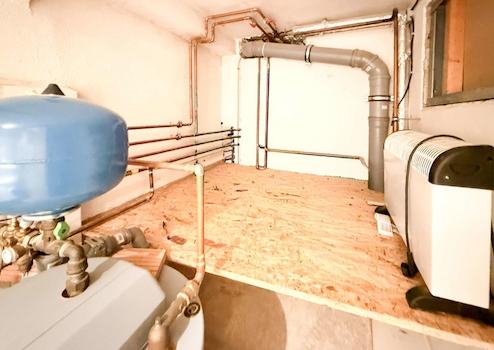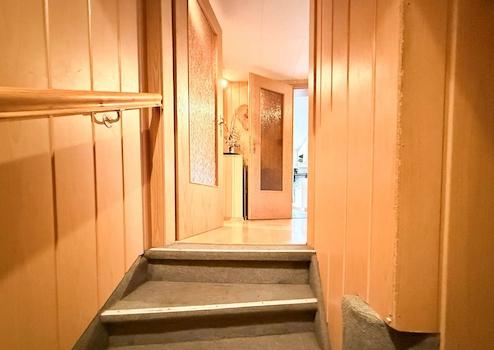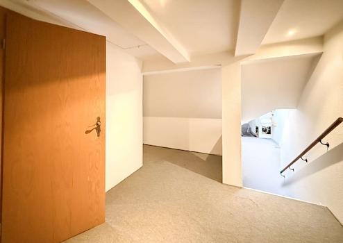 Von hier aus gelangen Sie in den teilweise ausgebauten, trockenen Keller, der sich gut als Lagerraum oder Werkbereich eignet.