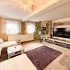 Ebenfalls im Erdgeschoss befinden sich: eine Küche, ein optionales Schlafzimmer oder Durchgangszimmer unterhalb der Treppe, ein Wohnzimmer, sowie ein weiteres Zimmer. Dieses Zimmer verfügt über einen separaten Eingang direkt an den drei Außenstellplätzen, sodass er sich hervorragend als Einliegerwohnung, Büroeinheit oder für eine vermietbare Wohneinheit anbietet. Die Eigentümer nutzten diesen Teil zeitweise selbst als Büro.