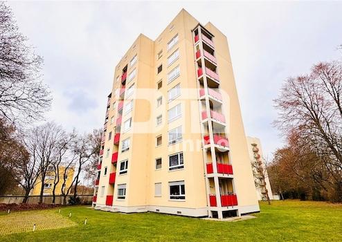 Die von angelegten Grünflächen umrahmte mehrgeschossige Wohnanlage wurde in den letzten Jahren teilweise erneuert.