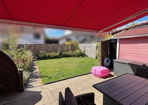 Der kleine, pflegeleicht angelegte Garten und die Terrasse mit ausfahrbarer Markise laden nach Feierabend zum Relaxen ein!