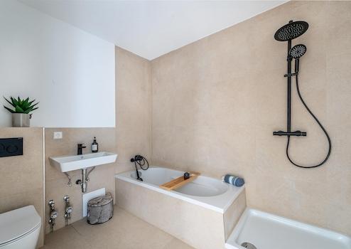- Bad mit Wanne, Dusche, WC und Waschmaschinenplatz